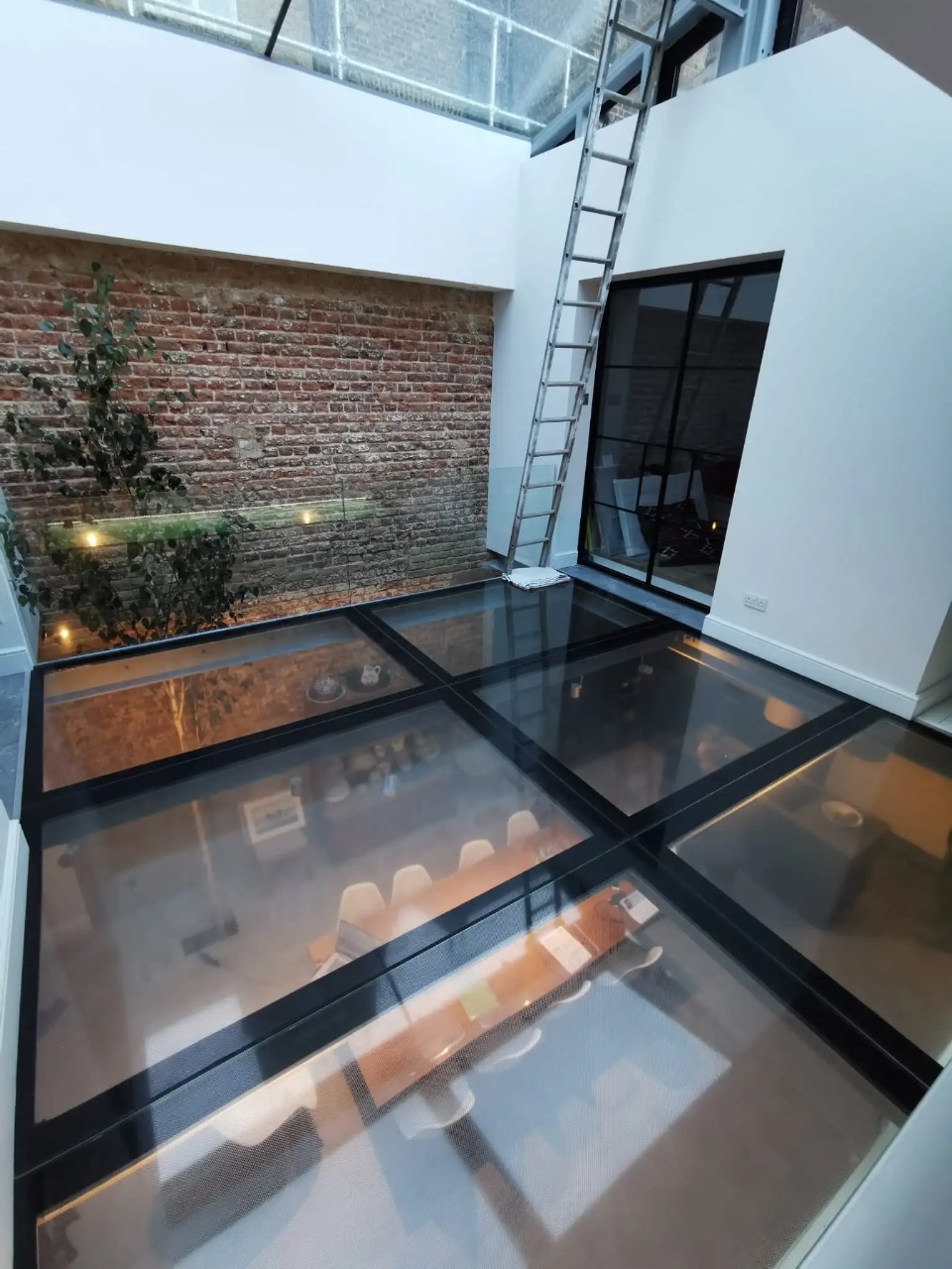 Walk-on glass is specially engineered, load-bearing glass designed to be safely walked on. Made from strong laminated or tempered panels, it adds a striking modern feature to floors, walkways, stairs, and skylights while allowing light to pass through and creating a sense of openness. Proper professional installation ensures safety and compliance with structural requirements.